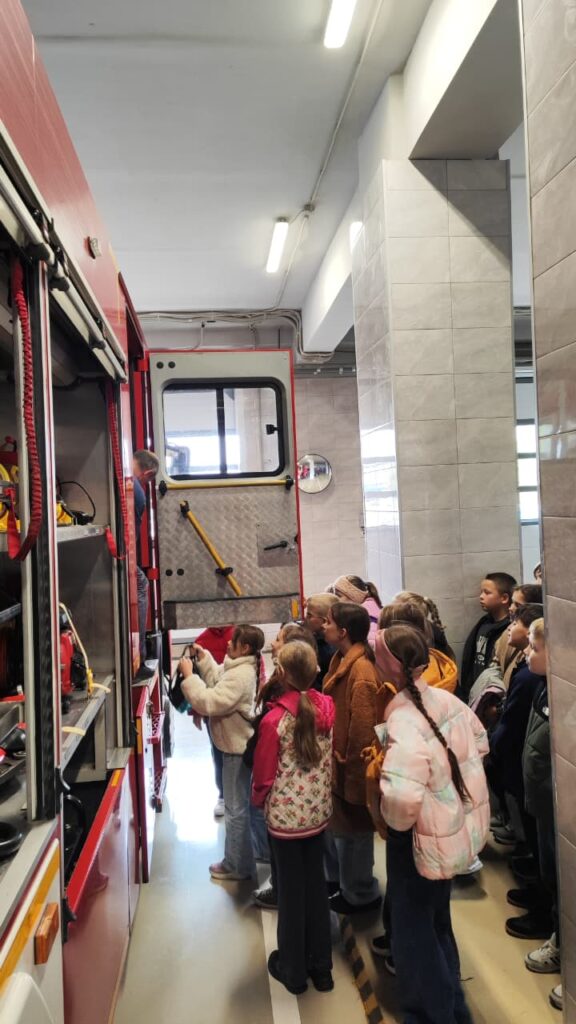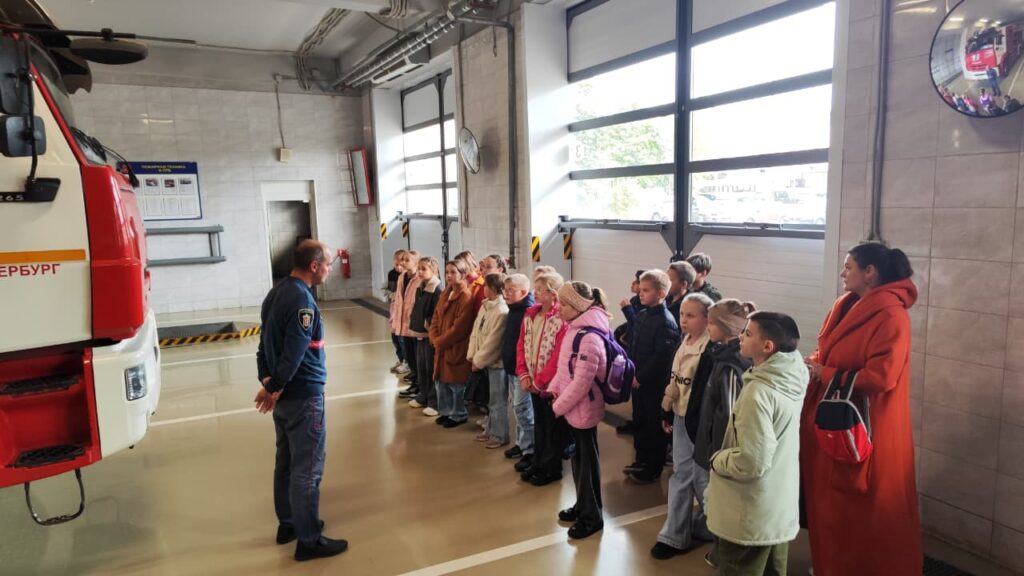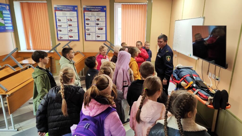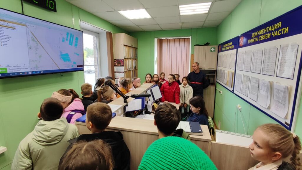 Стативо А. С. рассказал ребятам о спортивных достижениях пожарных. Далее ребята посетили пункт связи части и увидели, как работает диспетчер и как происходит обработка информации о пожаре. После всего Бородулин Ю. Г. подробно рассказал ребятам о пожарных автомобилях и пожарно-техническом вооружении. Рассказы действующего работника пожарно-спасательного отряда с огромным интересом слушали не только ученики, но и их родители. В ходе экскурсии ребята примерили одежду пожарного и пробовали спасти пострадавшего. Встреча прошла интересно и с пользой для ребят.