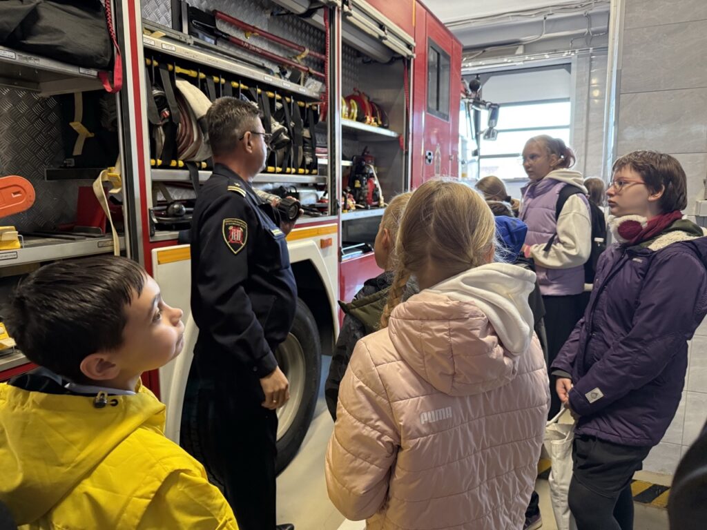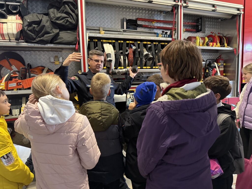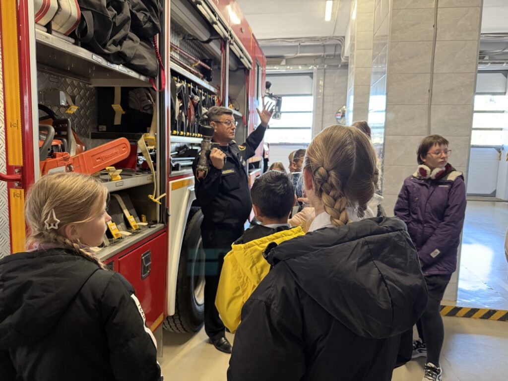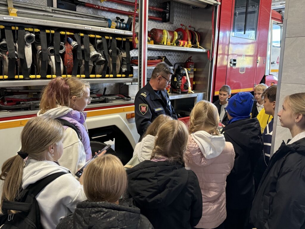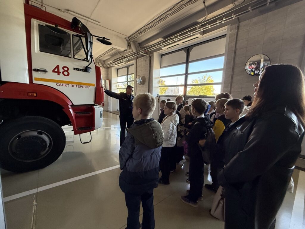 25 сентября ученики 401 школы Колпинского района пришли в гости к пожарным 48 пожарной части. Пожарно-спасательный отряд всегда радушно принимает гостей. Начальник пожарной части (профилактической) Сазонов Сергей Михайлович рассказывает про быт пожарных. Как проходят дежурные сутки пожарных. Чем они занимаются, если нет пожаров. Рассказал ребятам про пожарные автомобили и пожарно-техническое вооружение, которым пользуются работники ПСО при тушении пожаров. Заместитель председателя совета Колпинского отделения ВДПО Мехоношина Лидия Лольевна рассказала ребятам, как организовалась пожарная охрана в нашем городе. Как и чем тушили пожары во время Великой Отечественной войны. Напомнила ребятам правила пожарной безопасности. Ребята задавали много интересующих их вопросов. Мероприятие прошло интересно и познавательно. По окончании — традиционное фото на фоне пожарного автомобиля. Ребята поблагодарили всех за интересную и познавательную экскурсию.