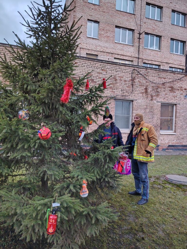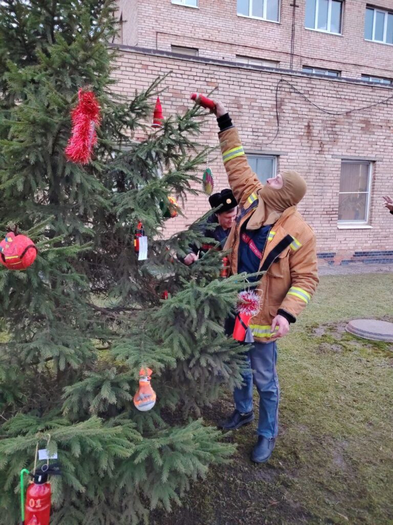 27 декабря работники пожарно-спасательного отряда с удовольствием приняли от Колпинского ВДПО работы ребят и нарядили ими ёлку. Организаторы конкурса считают, что это самый лучший подарок, ведь в этот день спасатели отмечают свой профессиональный праздник.